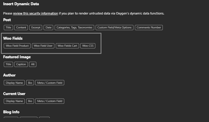 Let me introduce my new and improved Woo Fields snippet. You can now call them directly from the dynamic fields in Oxygen. Use them as dynamic fields or for conditional logic. It offers a wide range of fields to call from the product, user, or cart—and much more coming soon!